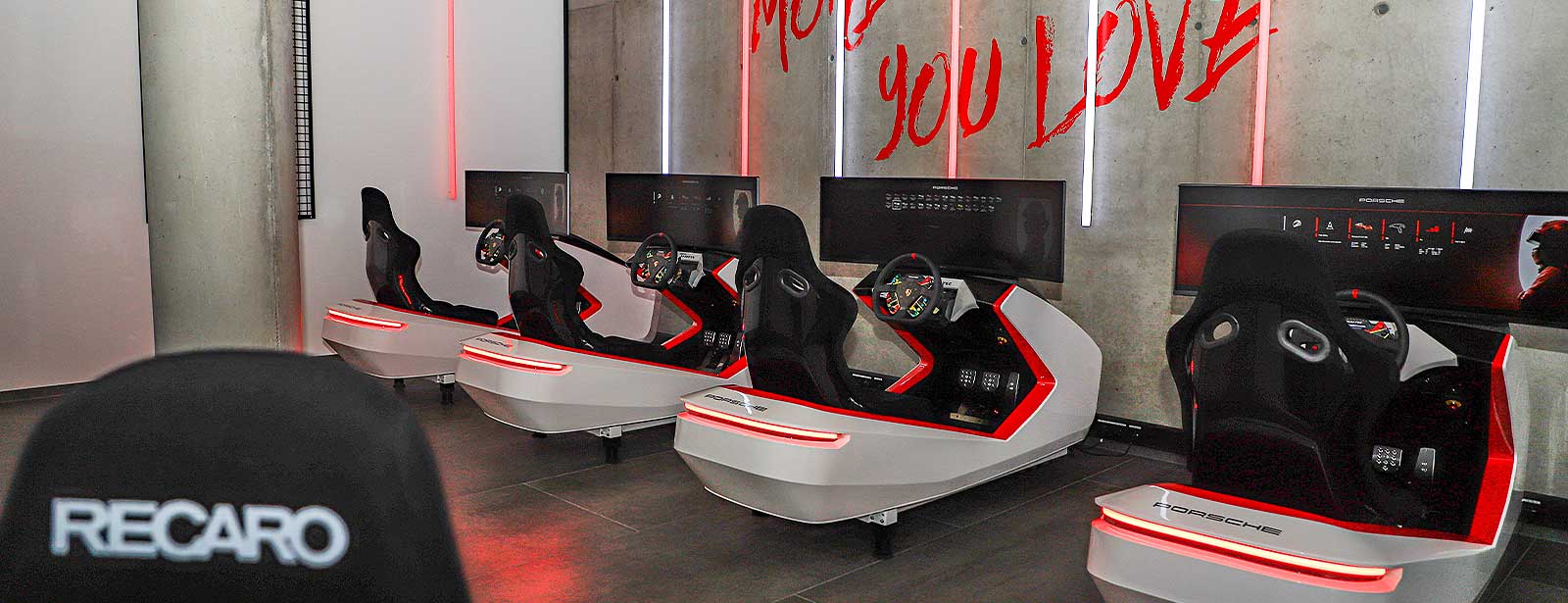 Näher kann man der Realität nicht kommen: unsere Simulatoren sorgen für ultimative Fahrerlebnisse auf höchstem Niveau. Ausgestattet mit Original Porsche Rennsitz, High-End-Gaming Bildschirm, professioneller SimRacing Hardware mit 911 GT3 Cup Lenkrad und Hochleistungspedalen, wird Motorsport sehr intensiv und direkt erlebt. Dabei sind die Simulatoren nicht einfach nur Zeitvertreib, sondern für Profis ein Weg, sich fahrerisch zu verbessern.