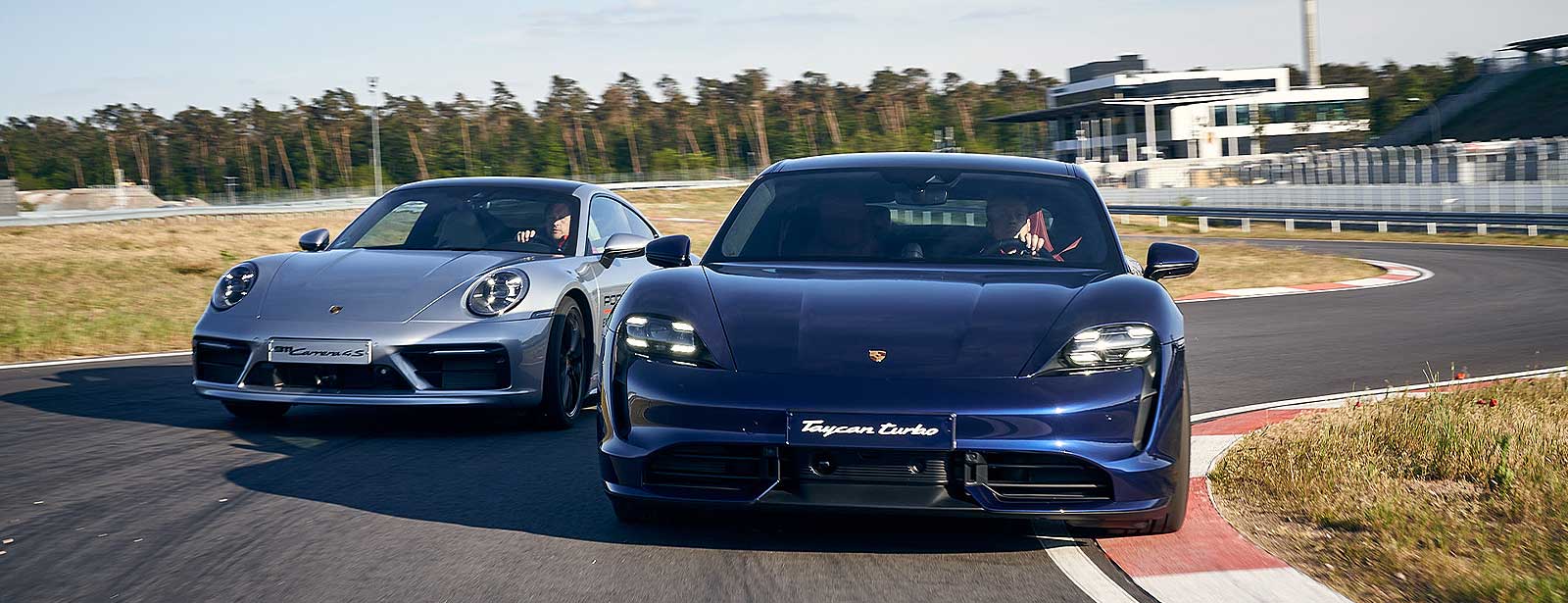 Whether front, mid or rear-mounted engine: decide on your two favourite models, get behind the wheel and after just a few metres on our handling track, you will discover why they are both so fascinating. A professional instructor will show you how to get the most out of both vehicles – and to be rewarded with uncompromising driving pleasure.